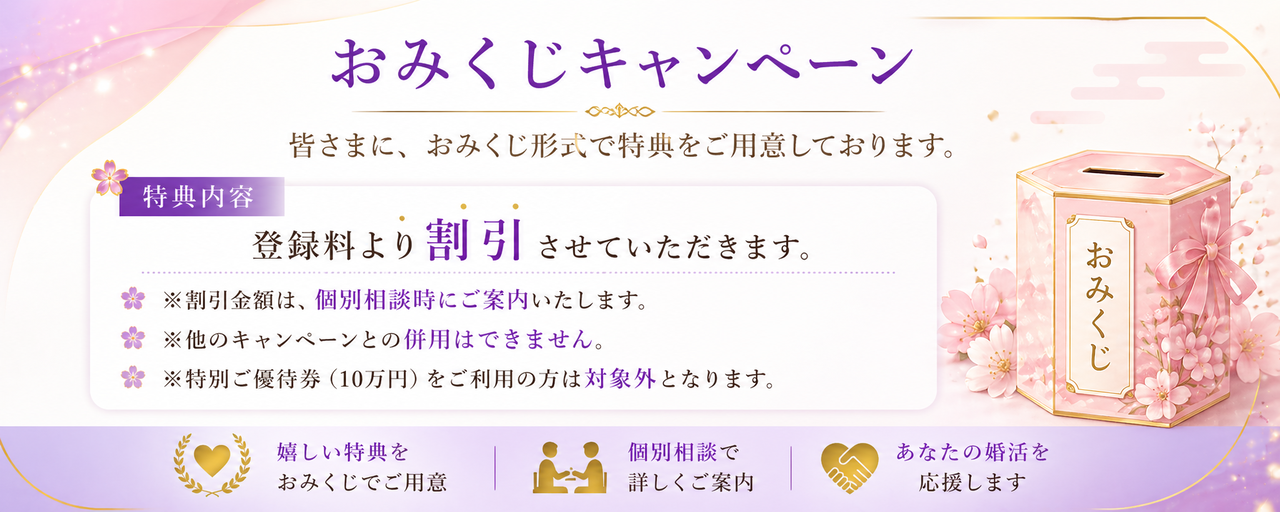 成婚特典:具体的な金額や対象条件は無料カウンセリング時にご説明いたします